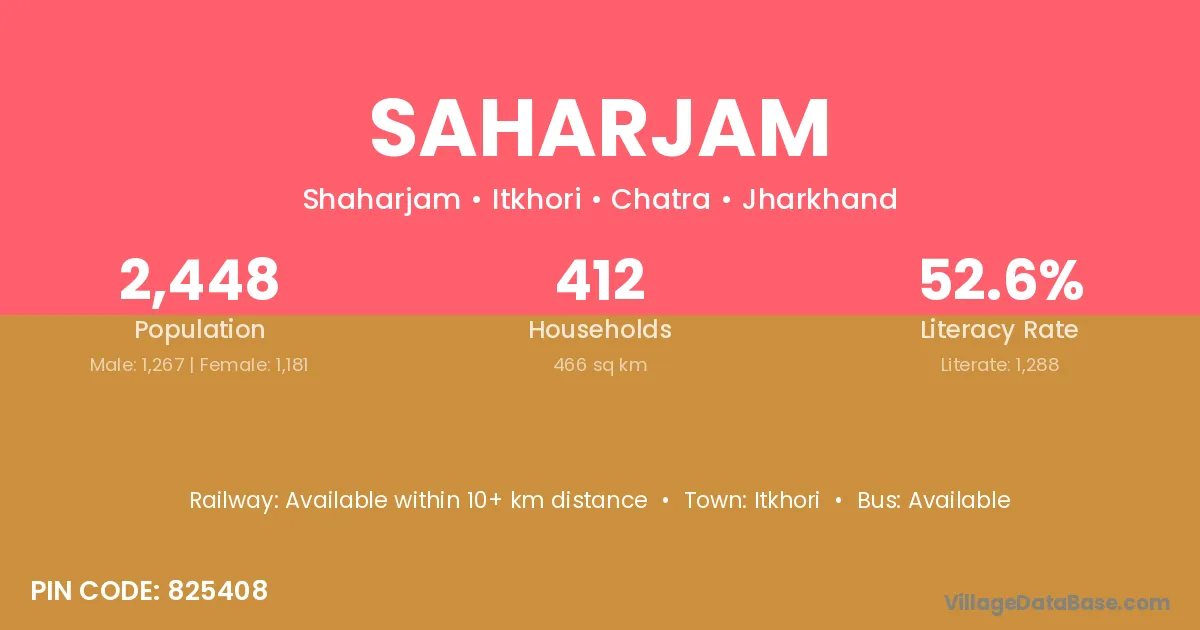 Saharjam village has a total population of 2,448 people, of which 1,267 are males and 1,181 are females.