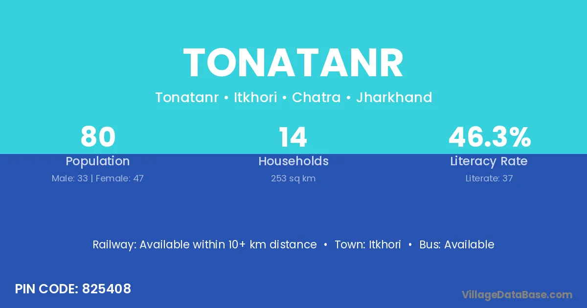 Tonatanr village has a total population of 80 people, of which 33 are males and 47 are females.