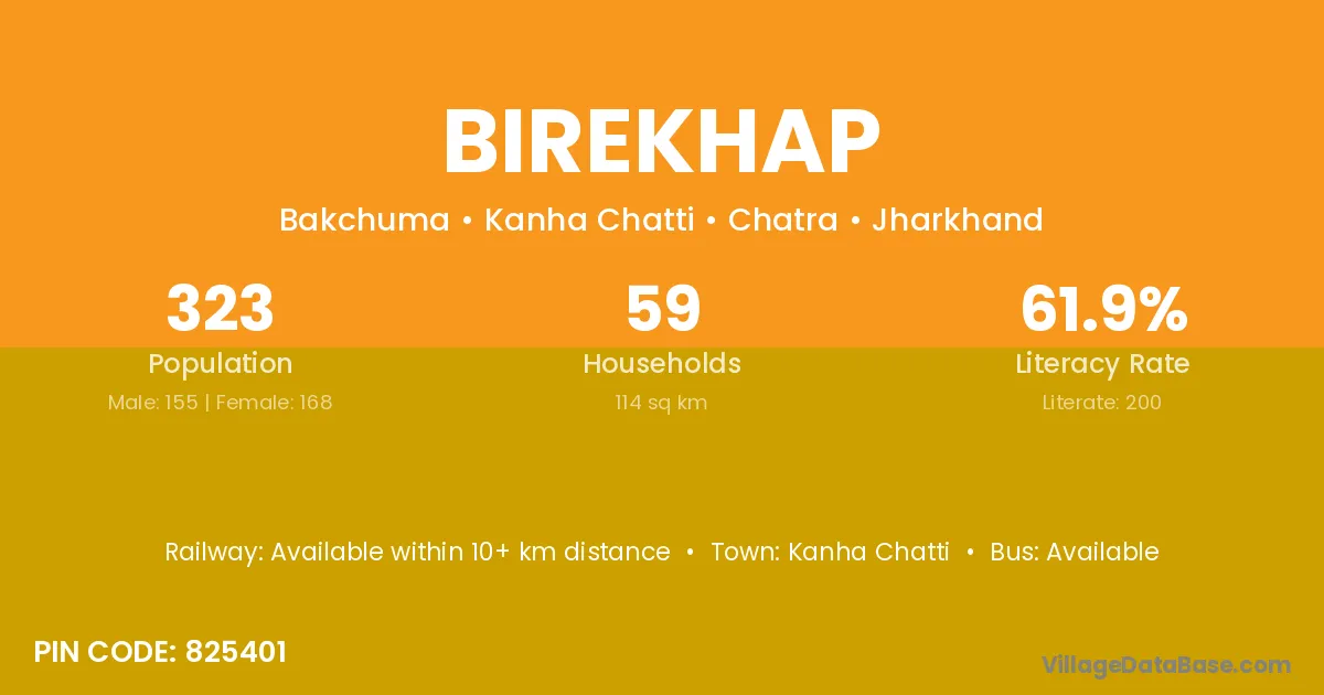 Birekhap village has a total population of 323 people, of which 155 are males and 168 are females.