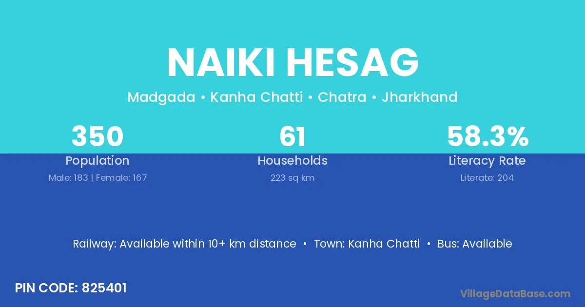 Kanha Chatti is the nearest town to Naiki Hesag village for major economic activities