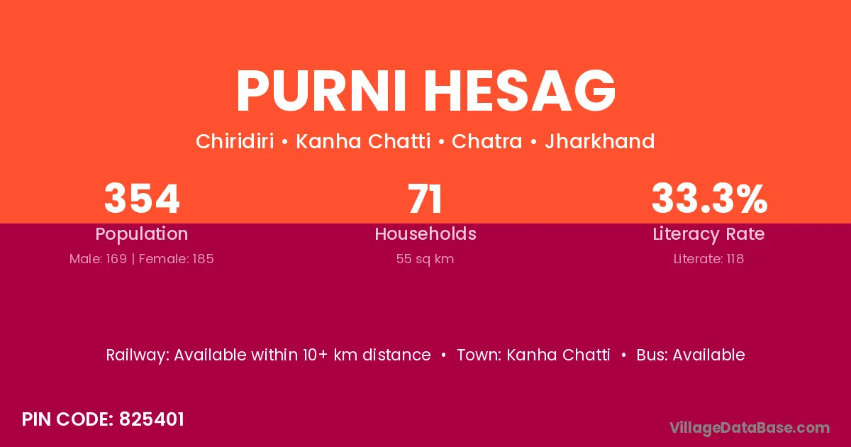 Kanha Chatti is the nearest town to Purni Hesag village for major economic activities