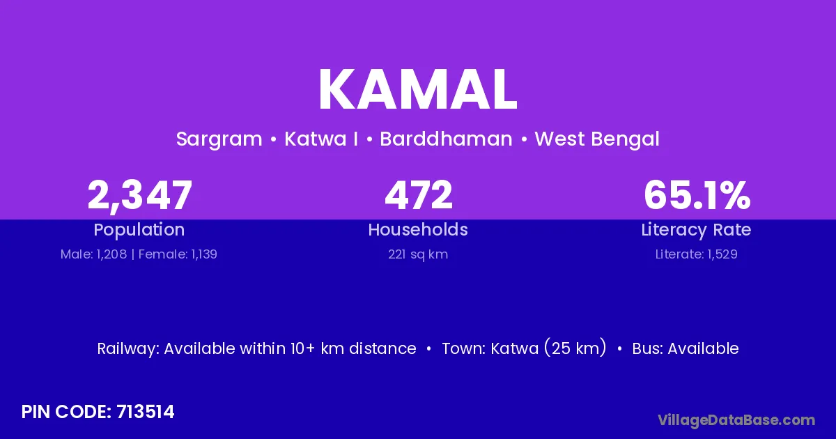 According to Census 2011 information, the village code of Kamal village is 825404.