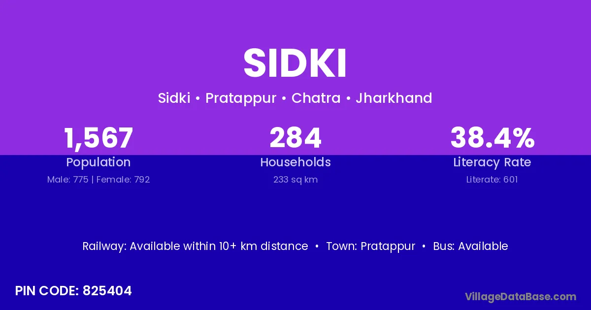 According to Census 2011 information, the village code of Sidki village is 825404.