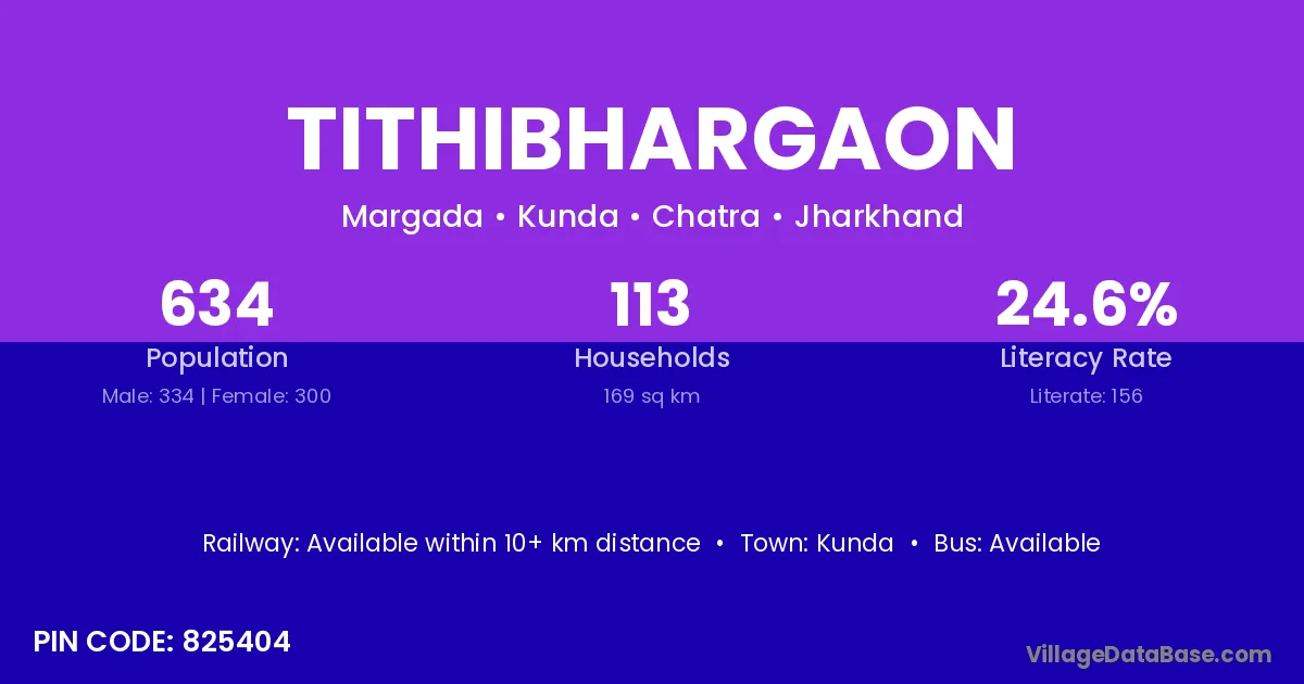 According to Census 2011 information, the village code of Tithibhargaon village is 825404.