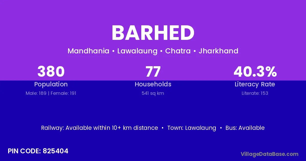 Barhed village has a total population of 380 people, of which 189 are males and 191 are females.