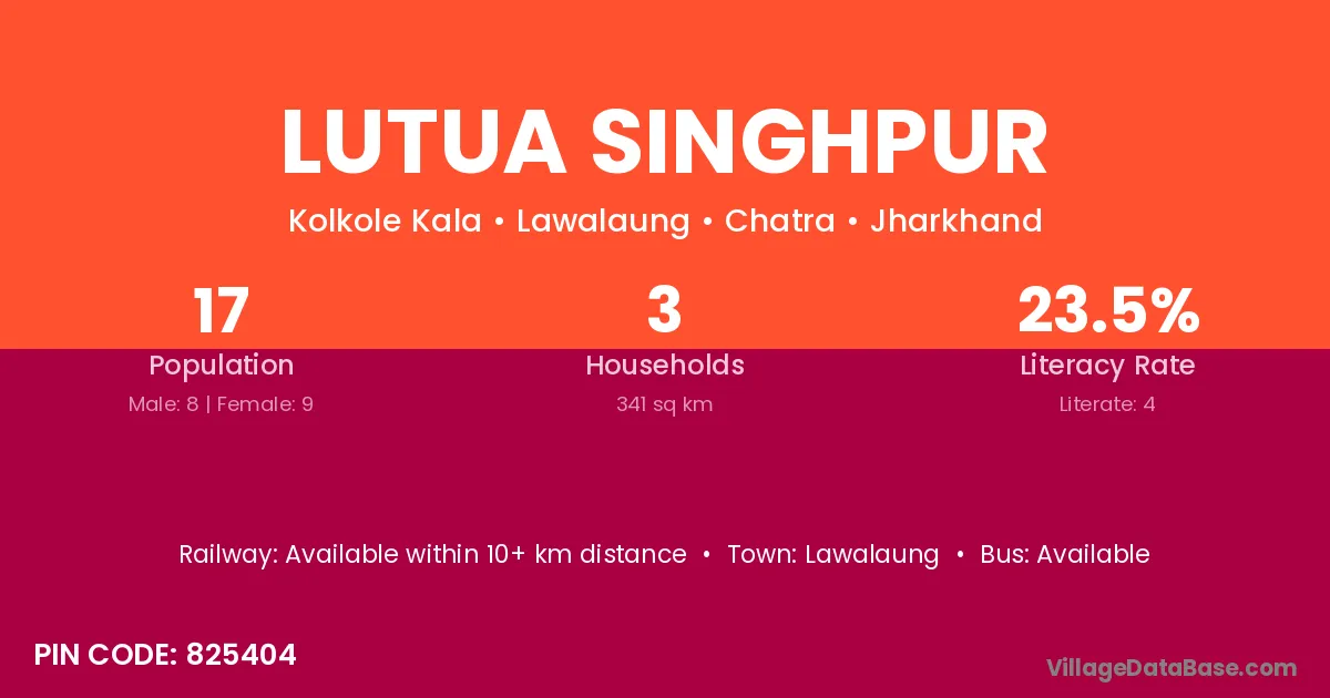 Lutua Singhpur village has a total population of 17 people, of which 8 are males and 9 are females.