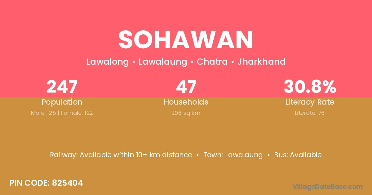 Sohawan village has a total population of 247 people, of which 125 are males and 122 are females.