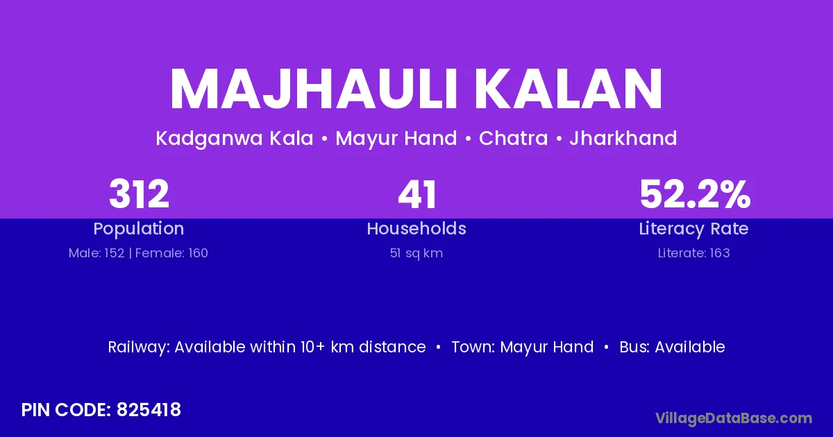 Majhauli Kalan village has a total population of 312 people, of which 152 are males and 160 are females.