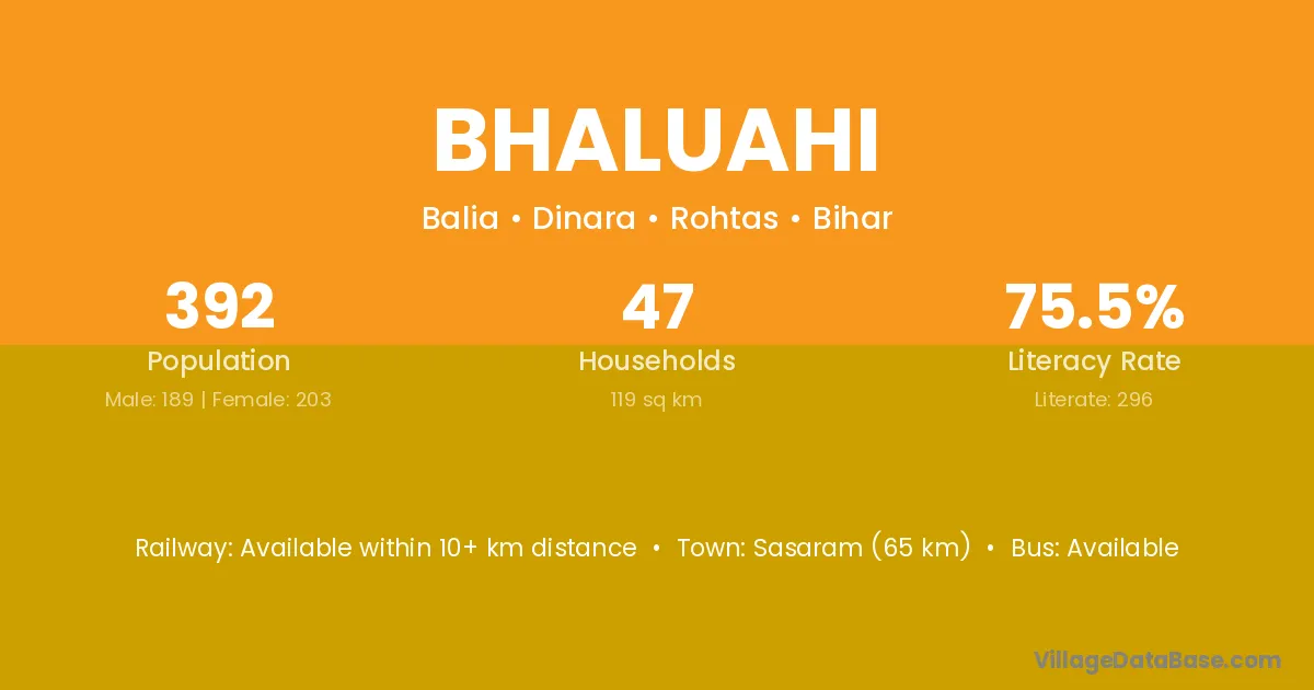 The literacy rate of Bhaluahi village is 48.68%. Male literacy stands at 61.50% and female literacy at 34.37%.