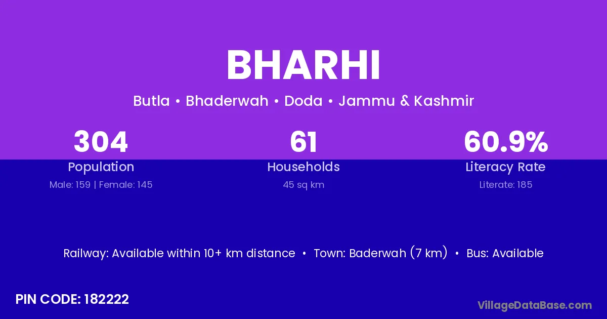 According to Census 2011 information, the village code of Bharhi village is 825404.