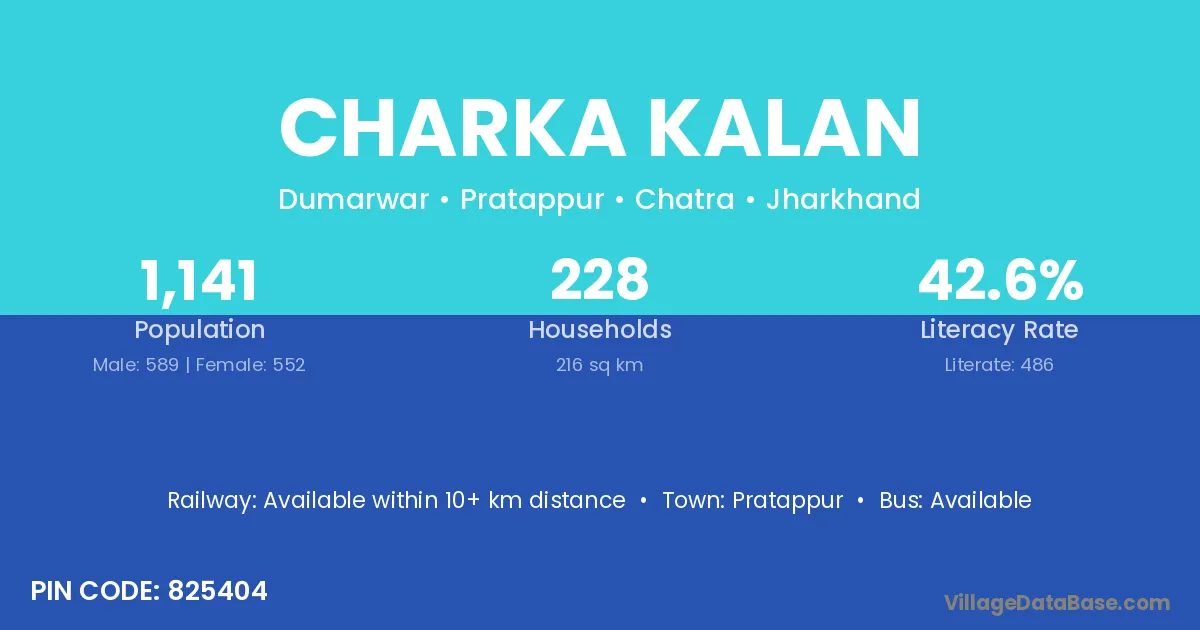 Charka Kalan village has a total population of 1,141 people, of which 589 are males and 552 are females.