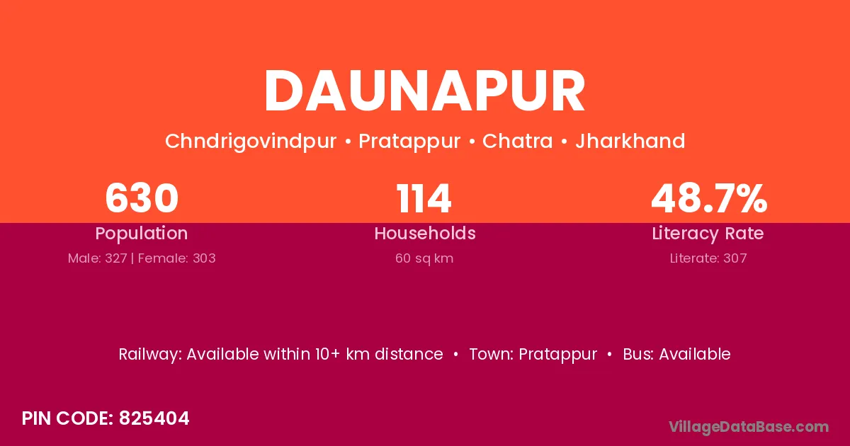 Daunapur village has a total population of 630 people, of which 327 are males and 303 are females.