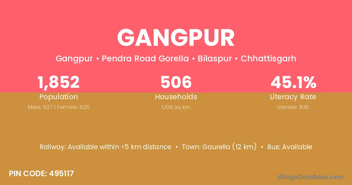 Pratappur is the nearest town to Gangpur village for major economic activities