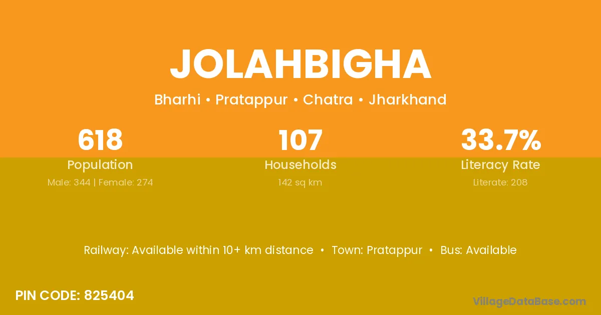 According to Census 2011 information, the village code of Jolahbigha village is 825404.