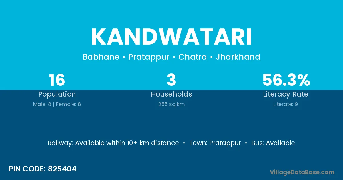 Kandwatari village has a total population of 16 people, of which 8 are males and 8 are females.