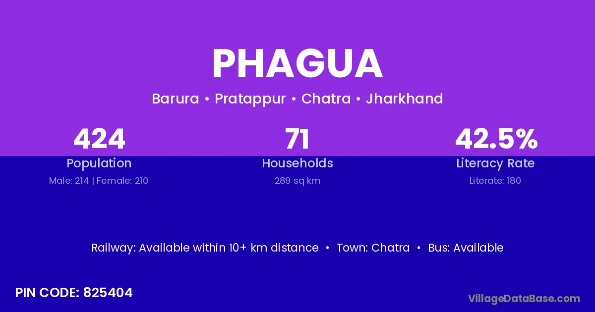 Phagua village has a total population of 424 people, of which 214 are males and 210 are females.