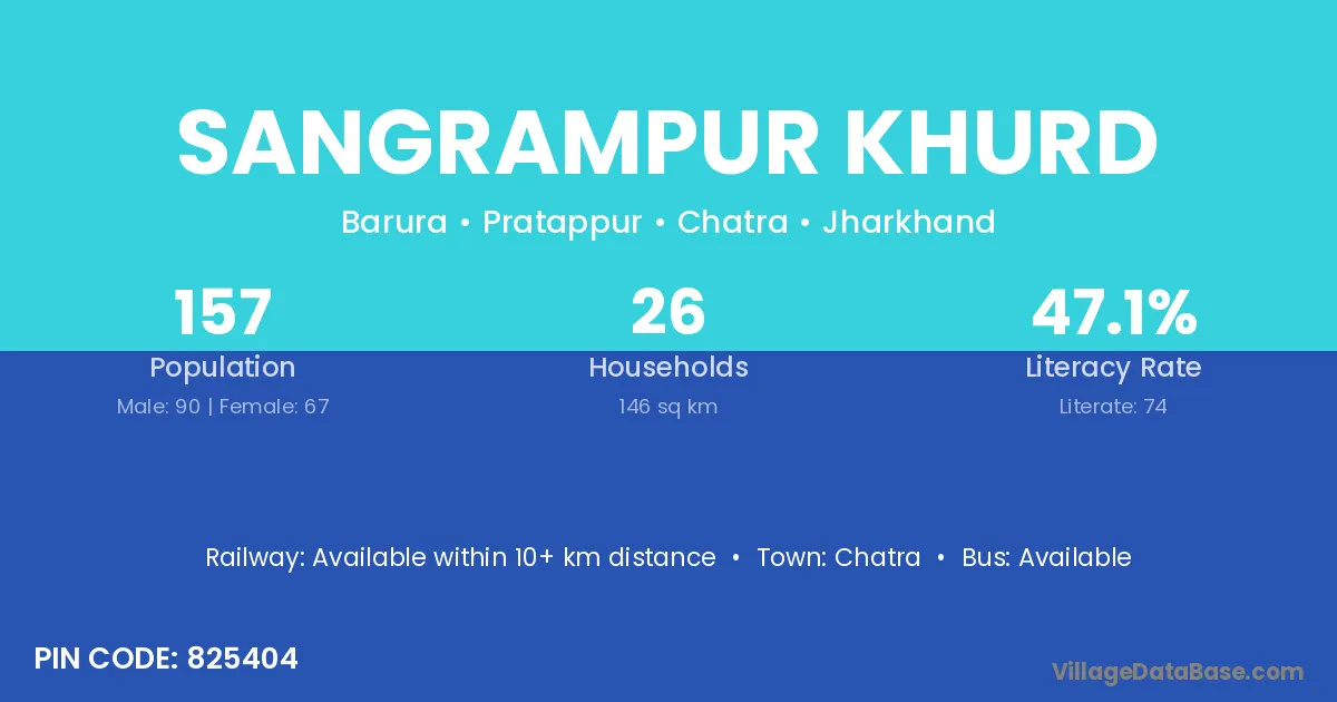 Sangrampur Khurd village has a total population of 157 people, of which 90 are males and 67 are females.