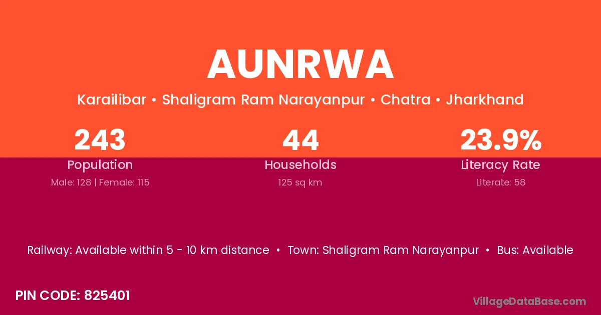 Aunrwa village has a total population of 243 people, of which 128 are males and 115 are females.