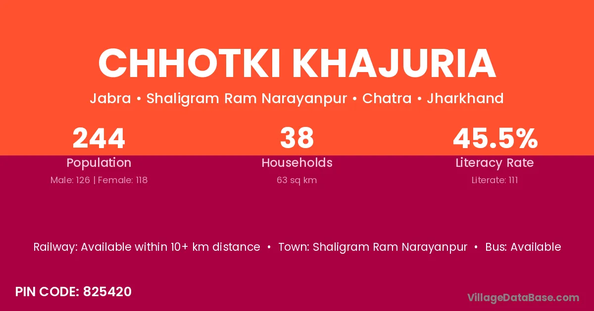 Chhotki Khajuria village has a total population of 244 people, of which 126 are males and 118 are females.