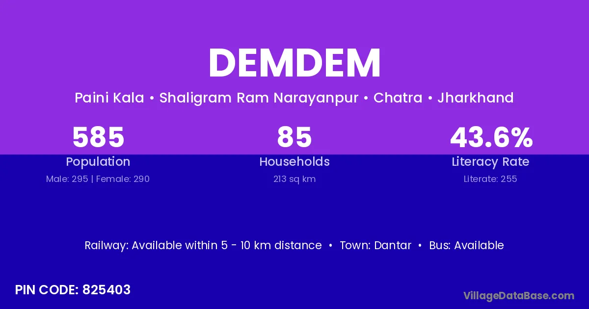 Demdem village has a total population of 585 people, of which 295 are males and 290 are females.