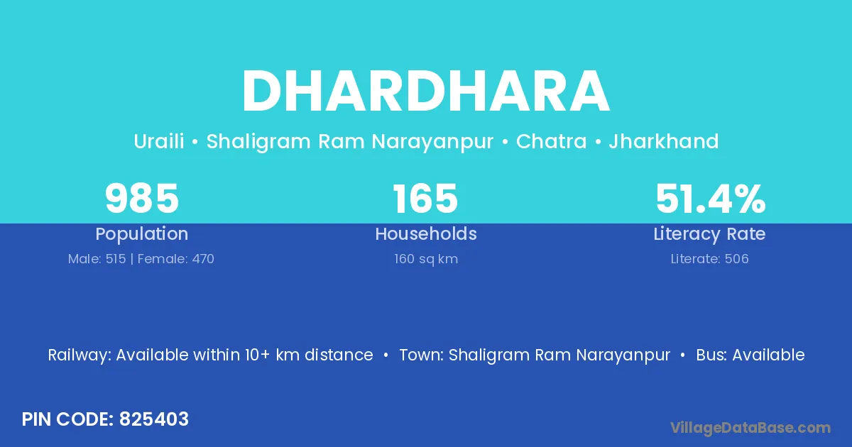 Dhardhara village has a total population of 985 people, of which 515 are males and 470 are females.