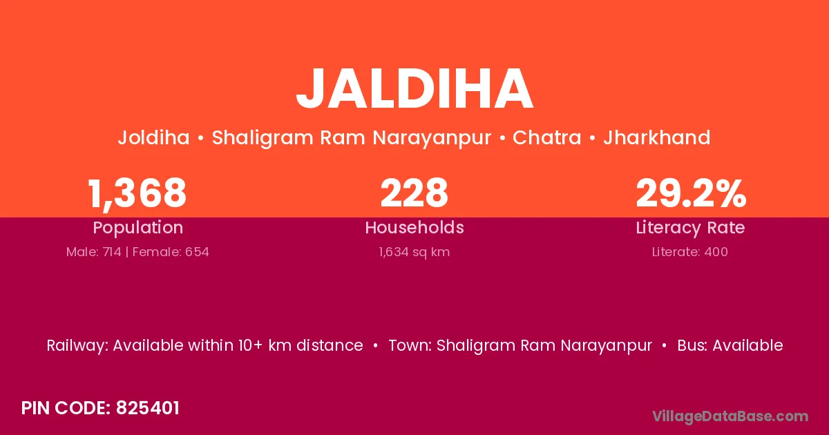 According to Census 2011 information, the village code of Jaldiha village is 825401.