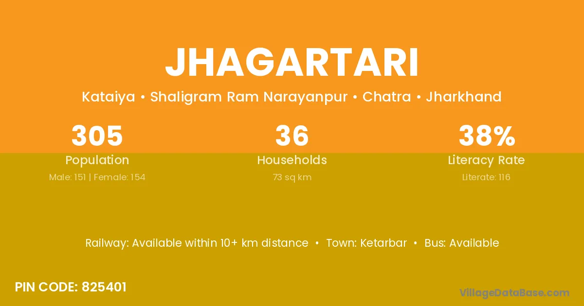 Jhagartari village has a total population of 305 people, of which 151 are males and 154 are females.