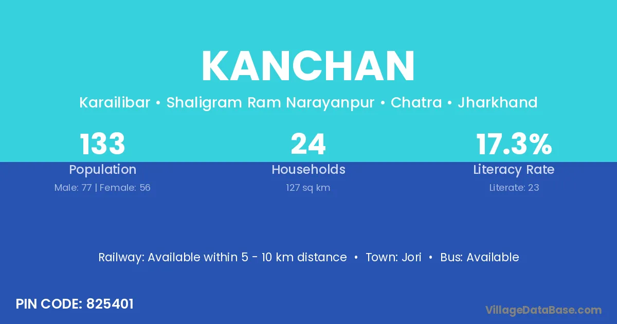 Kanchan village has a total population of 133 people, of which 77 are males and 56 are females.