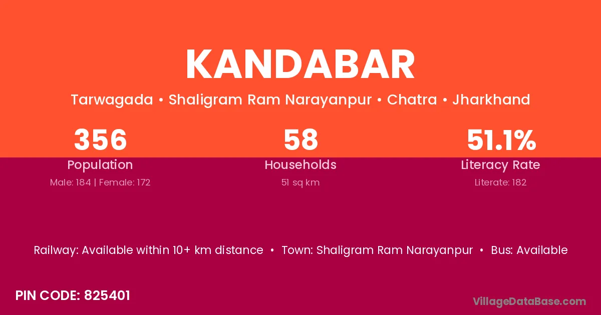 Kandabar village has a total population of 356 people, of which 184 are males and 172 are females.
