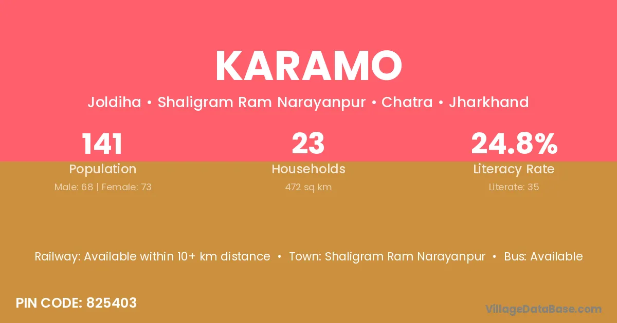 According to Census 2011 information, the village code of Karamo village is 825403.
