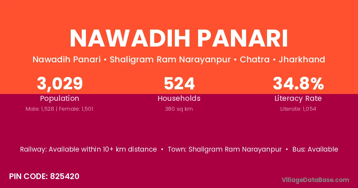 Nawadih Panari village has a total population of 3,029 people, of which 1,528 are males and 1,501 are females.