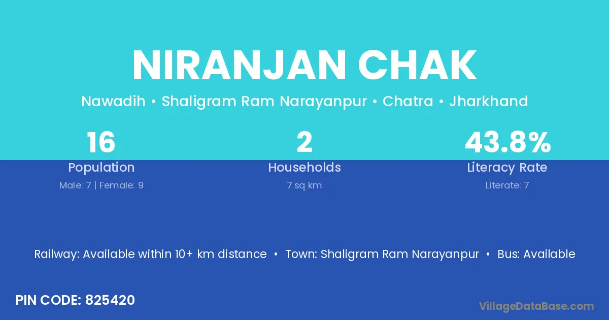 Niranjan Chak village has a total population of 16 people, of which 7 are males and 9 are females.