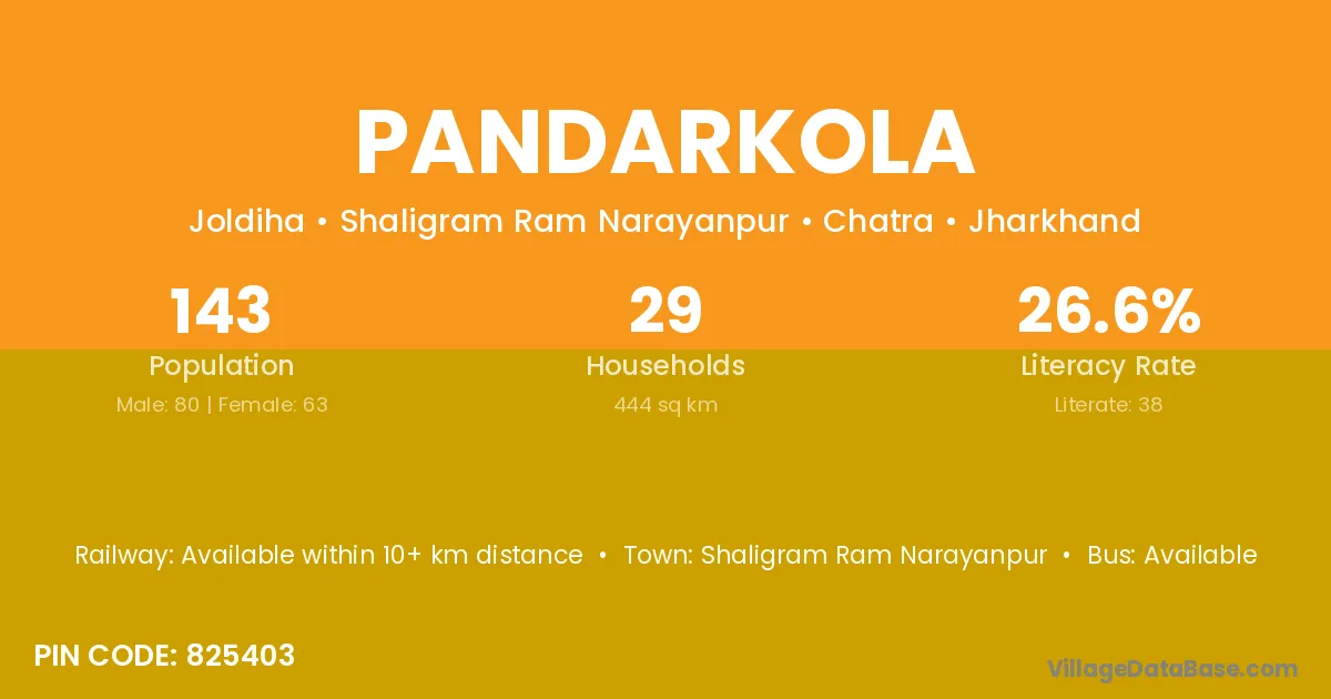 According to Census 2011 information, the village code of Pandarkola village is 825403.
