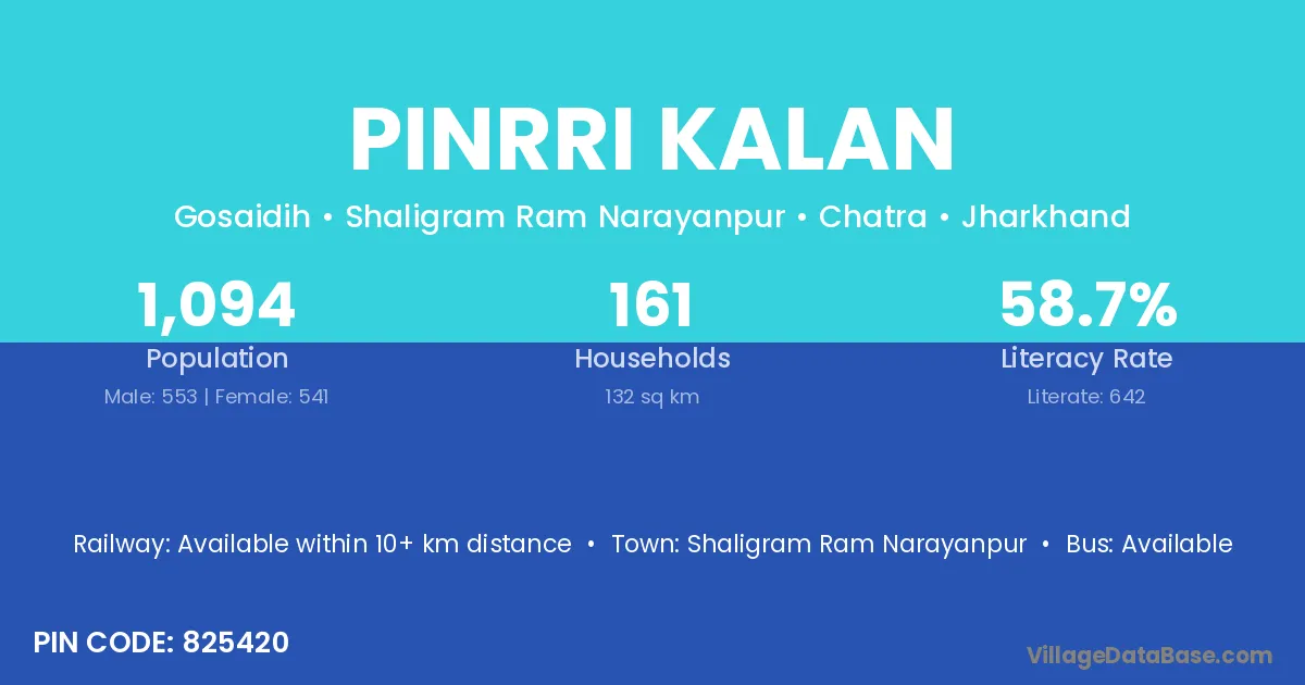 Pinrri Kalan village has a total population of 1,094 people, of which 553 are males and 541 are females.
