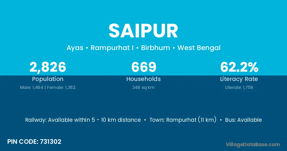 Shaligram Ram Narayanpur is the nearest town to Saipur village for major economic activities