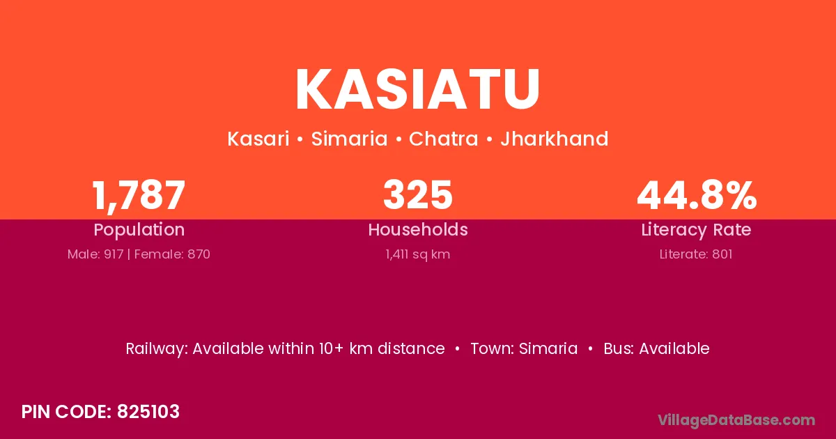 Kasiatu village is located in the Simaria Subdivision of the Chatra district in Jharkhand .