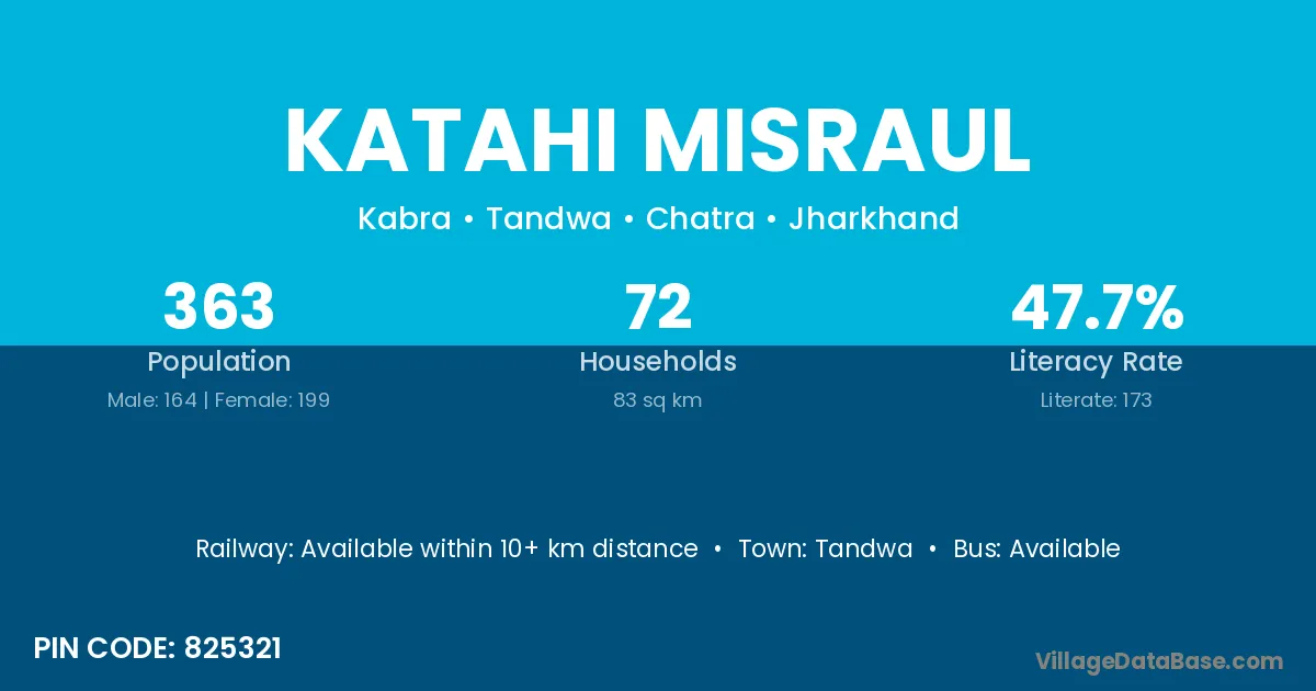 Katahi Misraul village has a total population of 363 people, of which 164 are males and 199 are females.