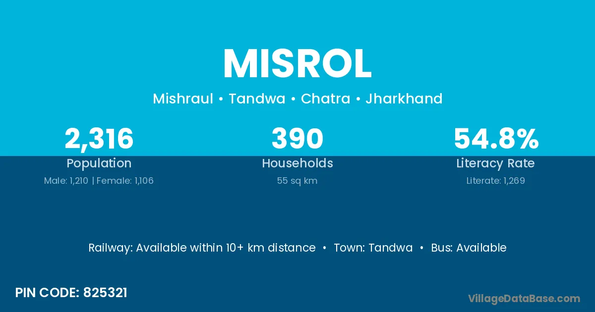 According to Census 2011 information, the village code of Misrol village is 825321.