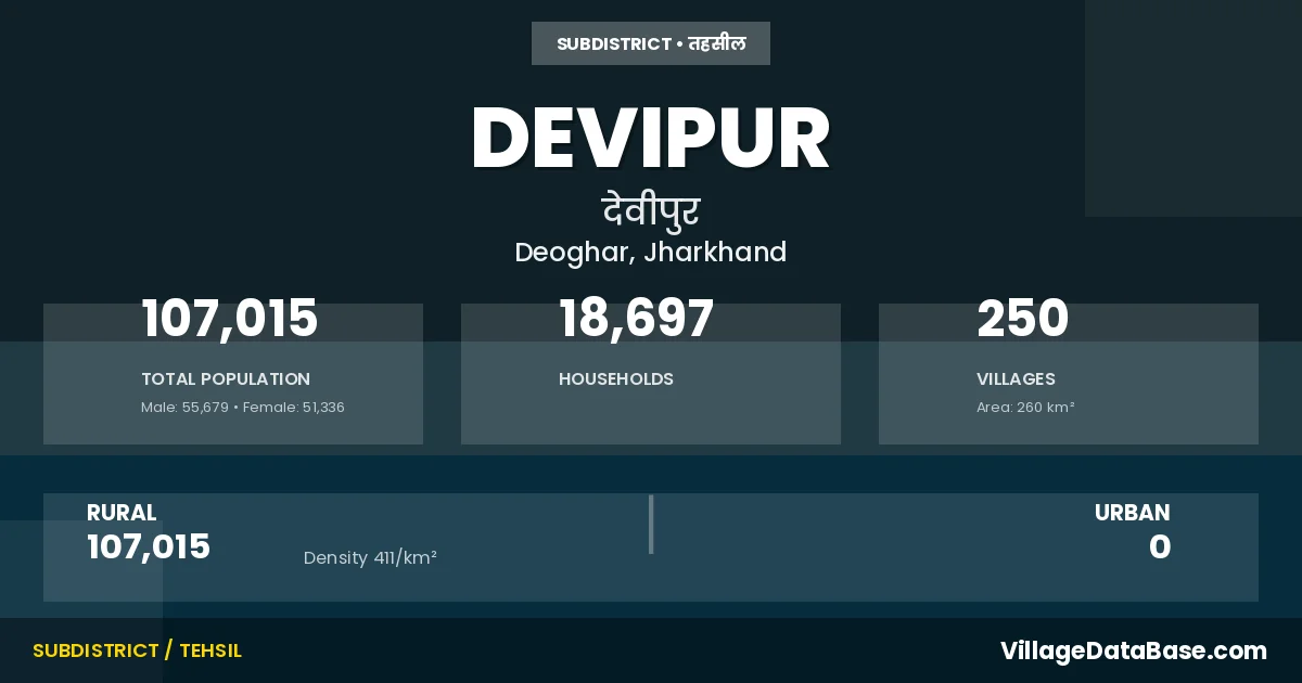 Devipur is a town and Subdivision in the Deoghar district of the Jharkhand. In India, a Subdivision is a subdivision of a district responsible for the administration and revenue collection of a specific area within the district. Subdivisions play a crucial role in the local governance structure, contributing significantly to the development and administration of their communities.