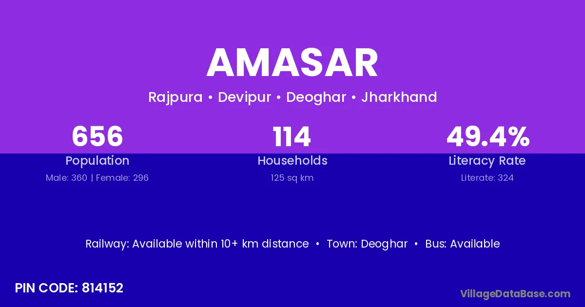Deoghar is the nearest town to Amasar village for major economic activities