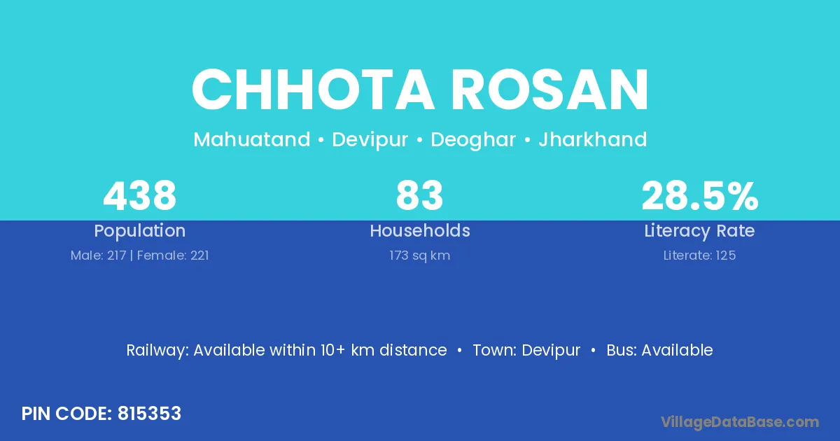 Chhota Rosan village has a total population of 438 people, of which 217 are males and 221 are females.