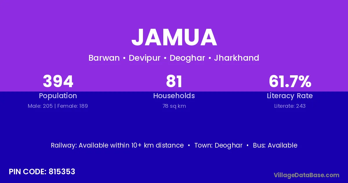 Deoghar is the nearest town to Jamua village for major economic activities