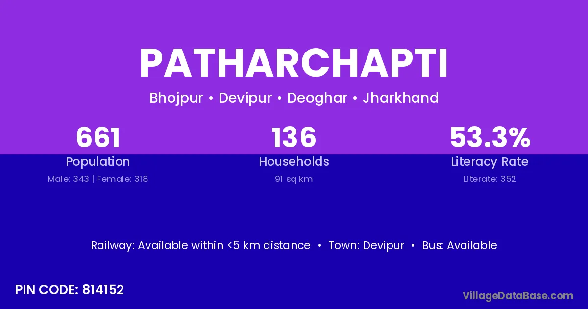 Patharchapti village has a total population of 661 people, of which 343 are males and 318 are females.
