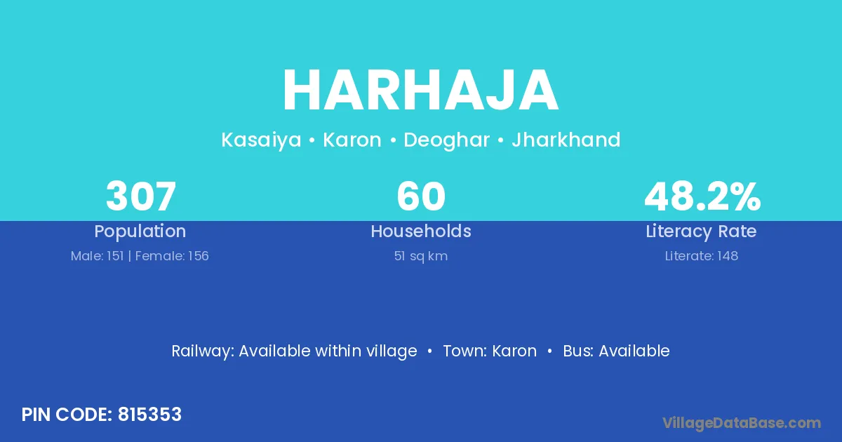 Harhaja village has a total population of 307 people, of which 151 are males and 156 are females.