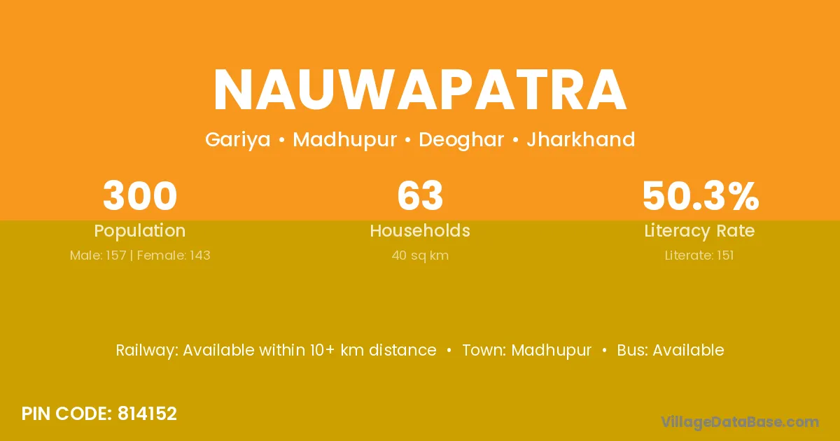 Nauwapatra village has a total population of 300 people, of which 157 are males and 143 are females.