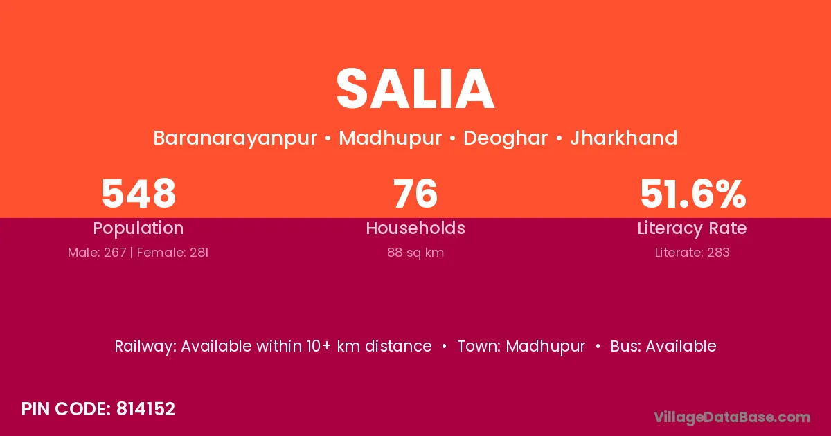 Madhupur is the nearest town to Salia village for major economic activities