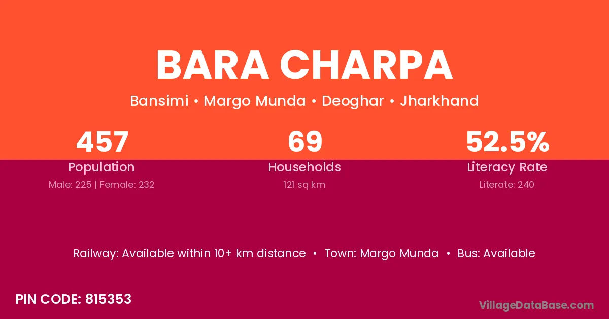 Bara Charpa village is located in the Margo Munda Subdivision of the Deoghar district in Jharkhand .