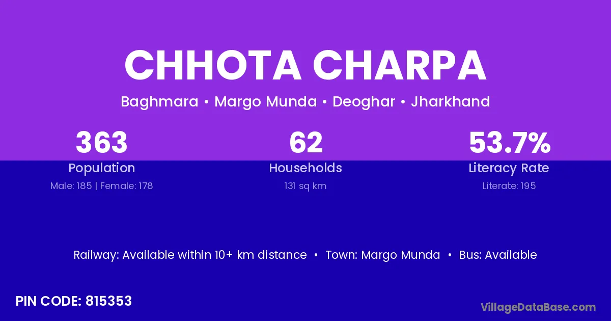 Margo Munda is the nearest town to Chhota Charpa village for major economic activities