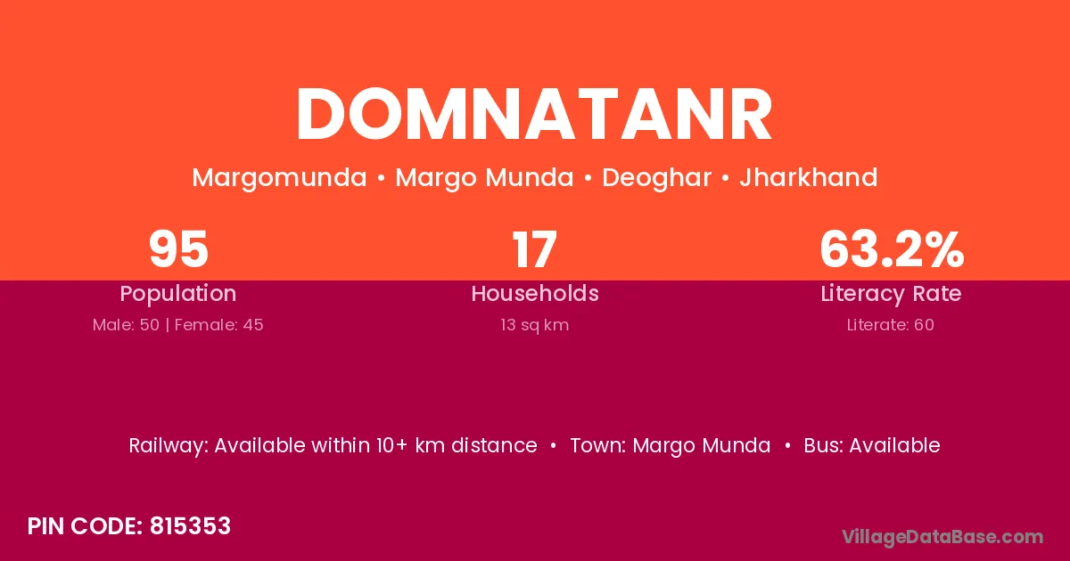 Domnatanr village has a total population of 95 people, of which 50 are males and 45 are females.