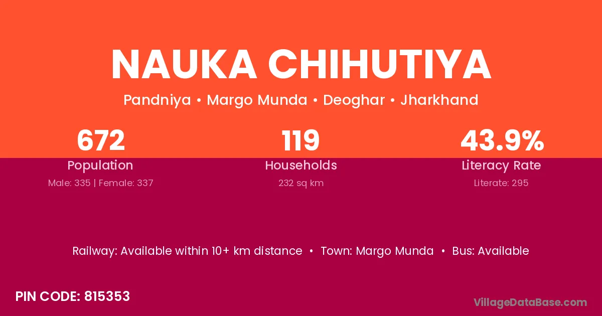 Margo Munda is the nearest town to Nauka Chihutiya village for major economic activities
